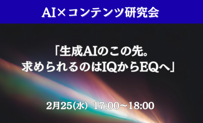 第15回 AI×コンテンツ研究会 「生成AIのこの先。求められるのはIQからEQへ」のお知らせ