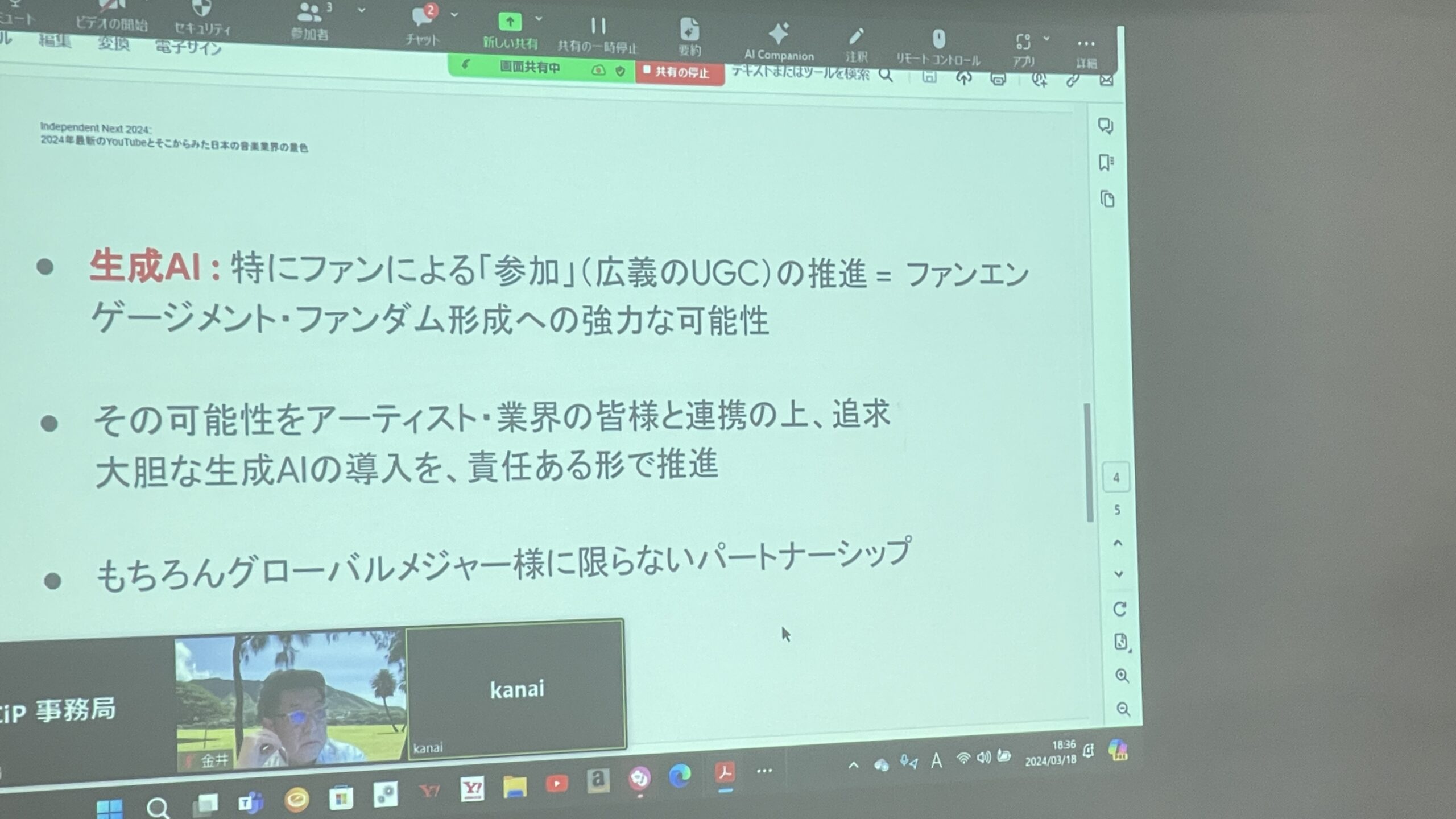 音制連としてはAI生成物の著作物としての権利のあり方とともに権利処理を業界としてどこまでやっていけるのかという点も課題。