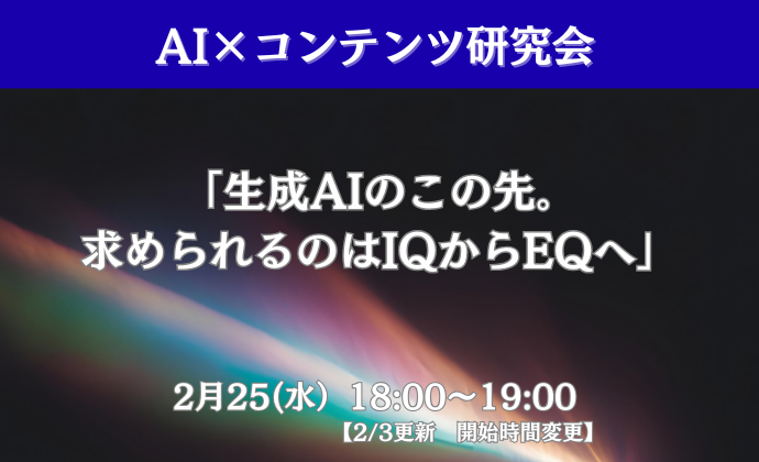 第15回 AI×コンテンツ研究会 「生成AIのこの先。求められるのはIQからEQへ」のお知らせ